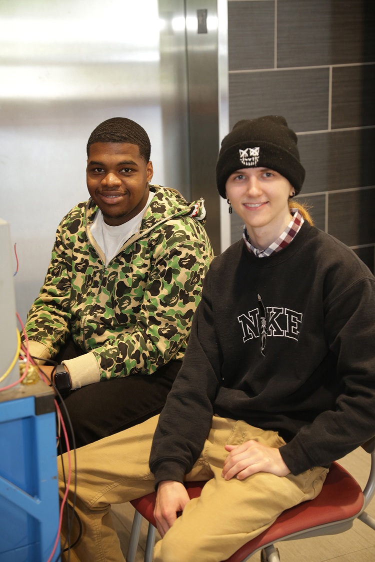 Hinds students Lakendric Ross, left, of Vicksburg and Kaleb Hinds of Florence attend a Vicksburg-Warren Campus admissions and registration pop-up event to share their classroom experience with potential enrollees.