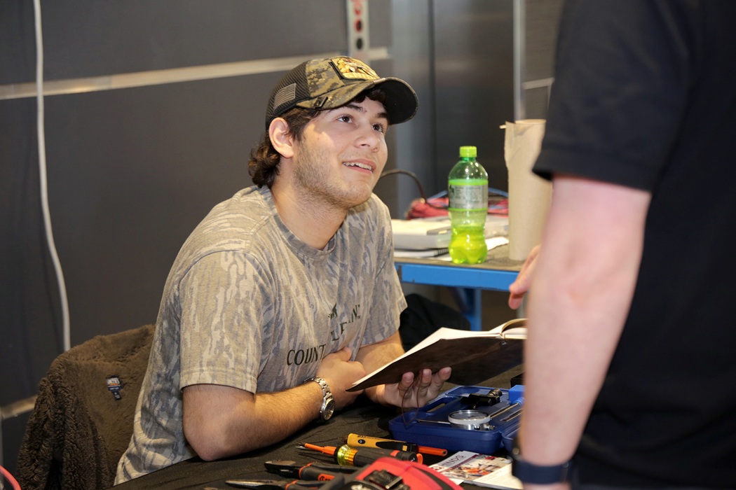 Hinds student Roman Tuminello of Vickburg talks to student recruits about the school’s Electro-Mechanical Technology program at the Vicksburg–Warren Campus.