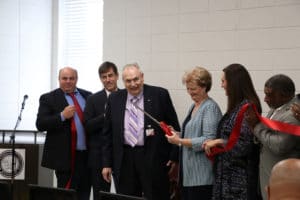 College officials and others representing partnering entities that made the center’s new location inside the Blackburn-May Building a reality marked the occasion with a formal program Sept. 19.