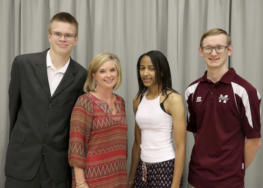 - Among those recognized were Andrew Price of Mendenhall, who received the Patsy Mayo Scholarship, left, Porsha Amos of Braxton, who received the Excellence in Career/Technical Education Scholarship, and Ryder Osmundson of Baldwyn, who received the Robert and Lee Mayo Scholarship. They are with Allison Mayo Deweese of Madison.
