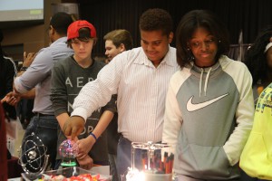 Richland eighth-graders Lake Cooper, left, and Isaiah Hall and McLaurin eighth-grader Damara Mason were impressed by the electronics demonstrations at Hinds Community College Career Exploration Day on Nov. 8.