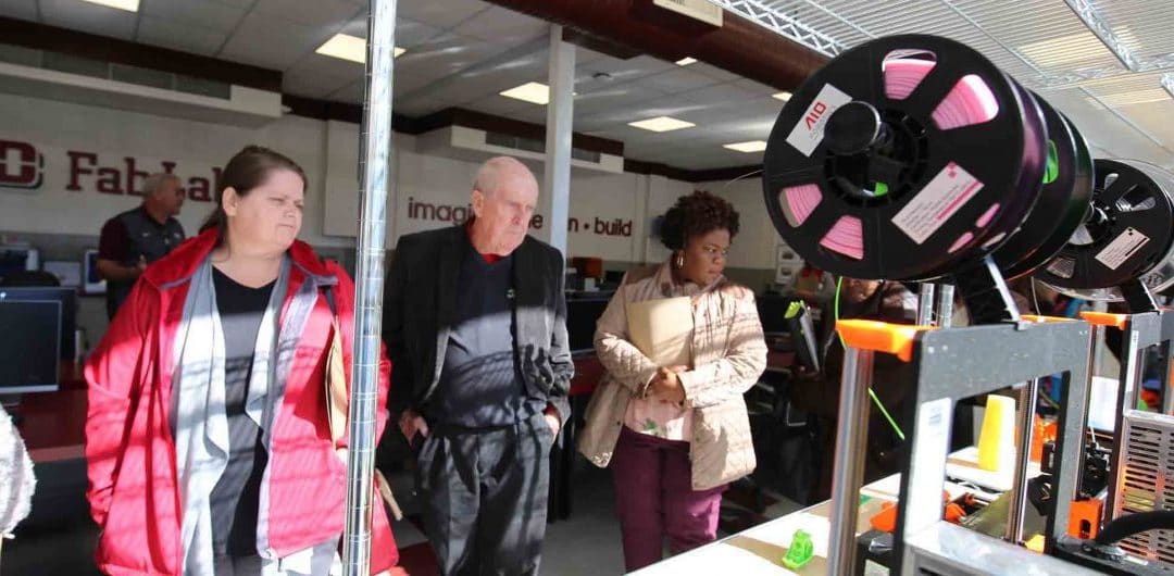- Copiah Academy counselors Penny Hartley and Hoyte Carothers, from left, and Claiborne County Career Center Director Fellecchia Epps look over equipment found in Hinds Community College’s Fab Lab during the Nov. 15 Counselors and Principals Workshop.