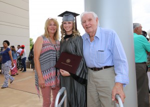 Casey Brown, center, of Lucedale, was among 464 students who received credentials from Hinds Community College during summer graduation ceremonies July 28 at the Muse Center on the Rankin Campus. She earned an Associate of Applied Science degree in Veterinary Technology. With her are her mother, Julie, left, and grandfather Kenneth Sullivan. (Hinds Community College/April Garon)
