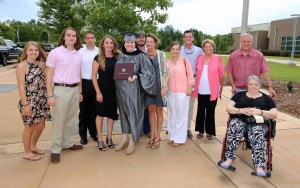 Shelby Cunningham, center, of Raymond, was among 464 students who received credentials from Hinds Community College at summer graduation ceremonies at the Muse Center on the Rankin Campus. From left- Kylee Cunningham, Skylar Cunningham, Van McDaniel, Christy Cunningham, Aaron Blakely, Nikki Ryan, Roxie Williams,Triston Cunningham,Theresa Ryan, Roger Jones and Lois Jones. (Hinds Community College/April Garon)