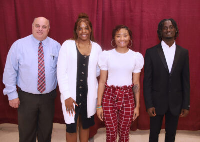 Among those being recognized was Kcy Jones of Canton, center, who received the Norcell, Ollie, LeRoy, Malcolm & Ezzard Charles Stamps Memorial Scholarship. With him were members of the Stamps family.