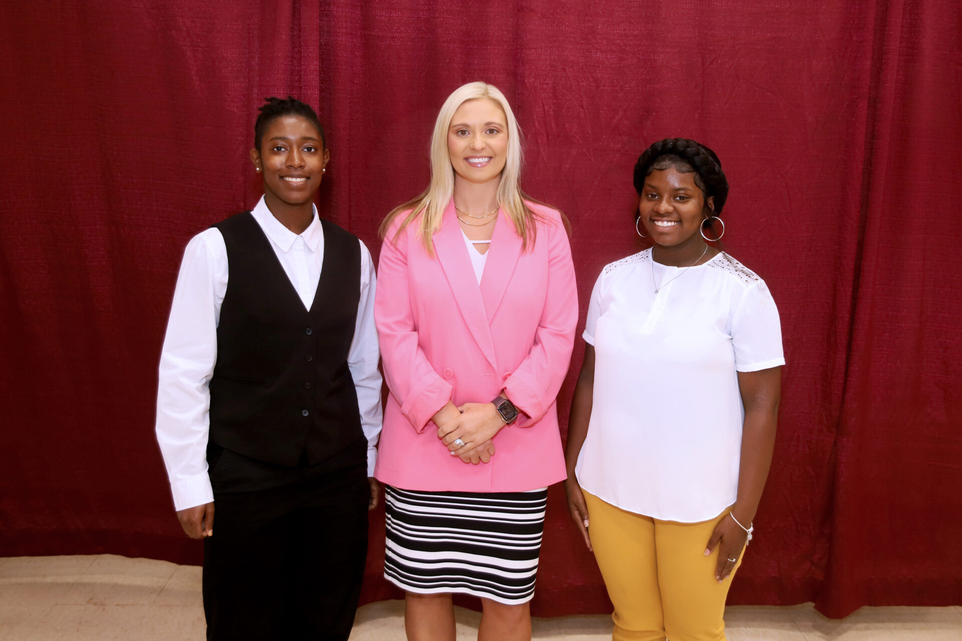 Among those being recognized were Brianna Ervin of Ridgeland, left, and Mya Kennedy of Jackson, right, who received the Foundation for Education and Economic Development Scholarship. With them was Hinds Vice President Andrea Janoush, center.