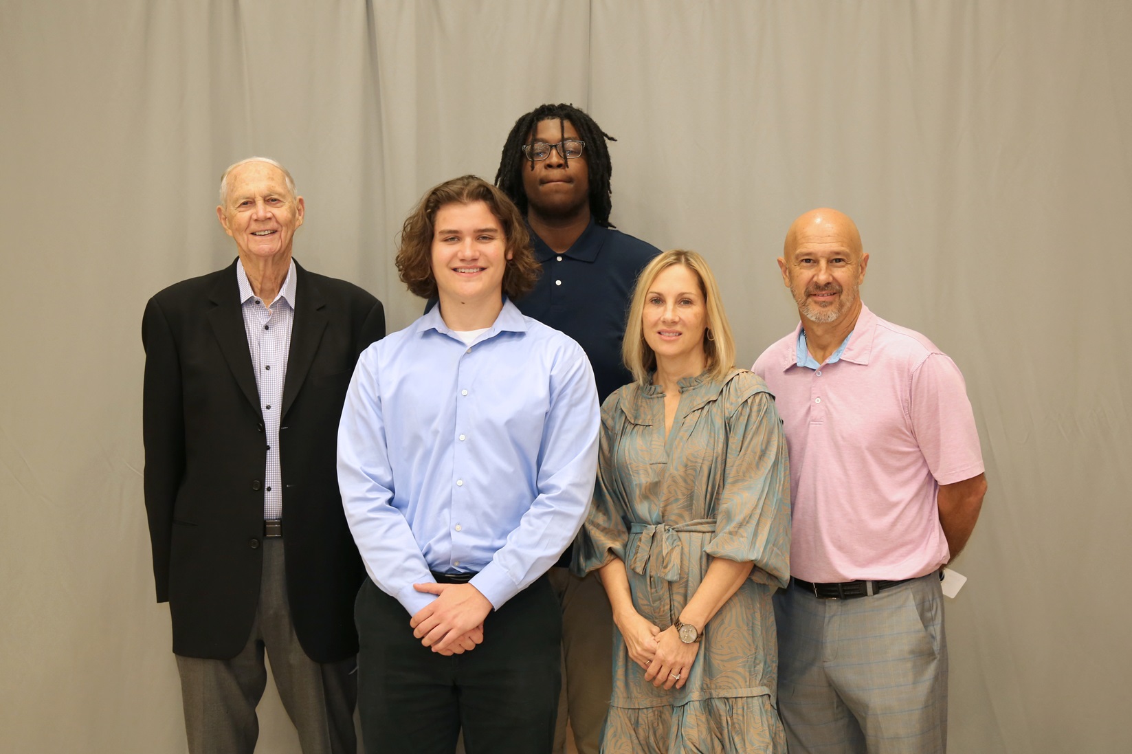 Among those being recognized were Nathan Winter of Brandon, front left, who received the Dean and Rebecca Liles Endowed Scholarship, and Jonathan Foster of Clinton, back, who received the Euell and Etoile Liles Family Endowed Scholarship. With them were Stacey Hall and Kenny Hall of Madison, and, back, Dean Liles of Texas.