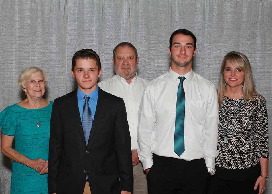 Among those recognized were James Hunter Harvey of Edwards, front from left, and Skyler Price of Utica, who received the Ken Smith Memorial Scholarship. They are with members of Ken Smith’s family, back from left, Vickie Smith of Learned, Randy Smith of Learned and Alyson Smith Dale of Brandon.