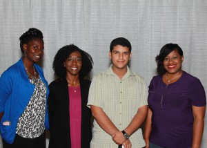 Among those recognized was Abdulaziz Yafai of Jackson, second from right, who received the Matthew Taylor Rankin Scholarship. He is with Hinds Community College employees Carla Cause of Pearl, left, April Reynolds of Jackson and Aleisha Coins of Terry, far right.