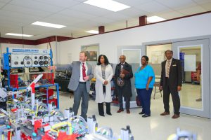 David Creel, director of Workforce Manufacturing Training, explains the Mechatronics lab to Jackson legislators Rep. Debra Gibbs, Sen. Hillman Frazier, Rep. Kathy Sykes and Sen. Albert Butler.