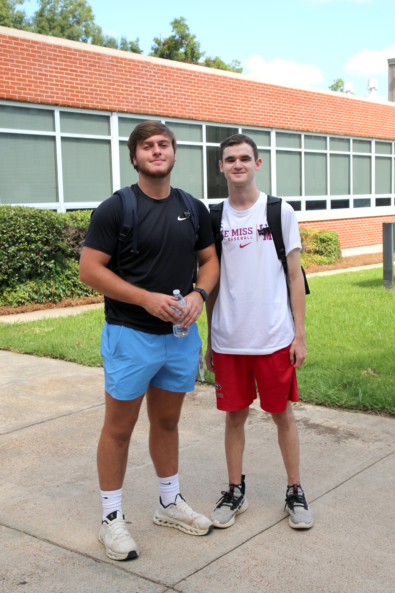 Freshmen Aiden Melina, 18, of Monroe, La., and Andrew Graves, 18, of Clinton, walked out of Beemon Hall together discussing what they learned in their first biology class. Even though Melina is a Hinds baseball player and Graves is baseball team manager, the pair had just met.