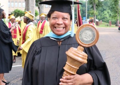 Retiree Loretta Gandy was the macebearer/grand marshal for the May 18 graduation ceremony at the Utica Campus of Hinds Community College. (Tammi Bowles/Hinds Community College)