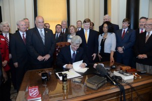 Gov. Phil Bryant ā surrounded by workforce development leaders, legislators including Rep. Deborah Butler Dixon of Raymond and Rep. Alex Monsour of Vicksburg as well as community college and university officials ā signed the Workforce Development Bill on March 21.