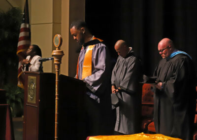 Dymonte Bouldin of Madison led the invocation and benediction for the nursing and allied health ceremony. He received a credential in Practical Nursing. While attending classes at the Nursing/Allied Health Center, he was a member of Phi Theta Kappa honor society and class president. He is employed at Behavioral Health at Merit Health Center.
