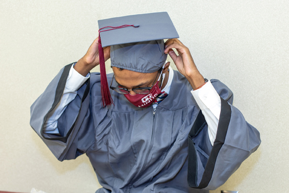 - Daniel Davis of Clinton adjusts his mortarboard before the May 15 Hinds Community College graduation ceremony at the Utica Campus. Davis studied engineering while on the Utica Campus.