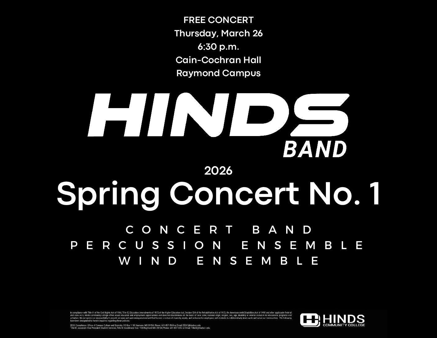 The annual Spring Band Concert No. 1 will feature our concert band and wind ensemble showcasing student work through various styles of literature.